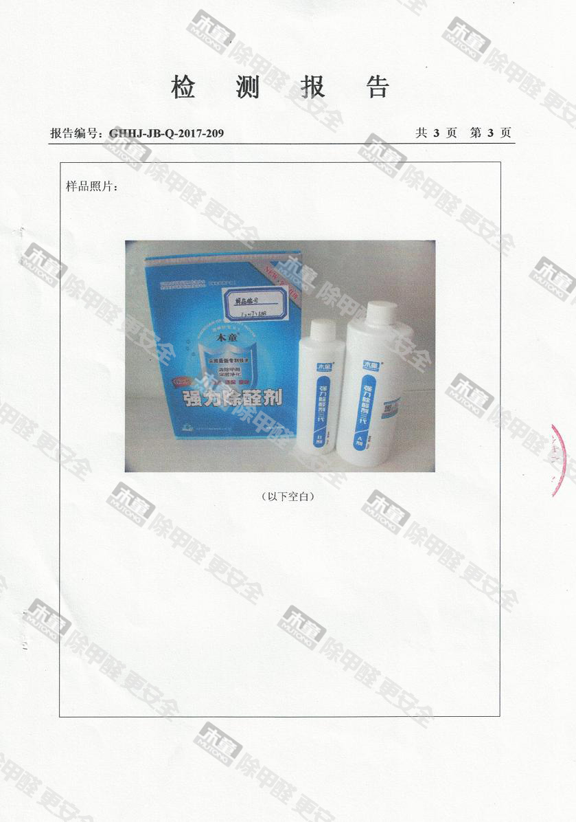 木童除醛2號三代效果檢驗報告2017