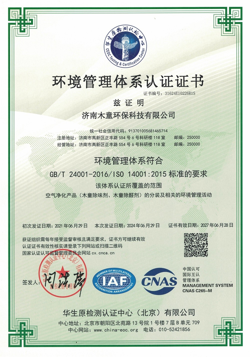 環(huán)境管理體系認證2023英文
